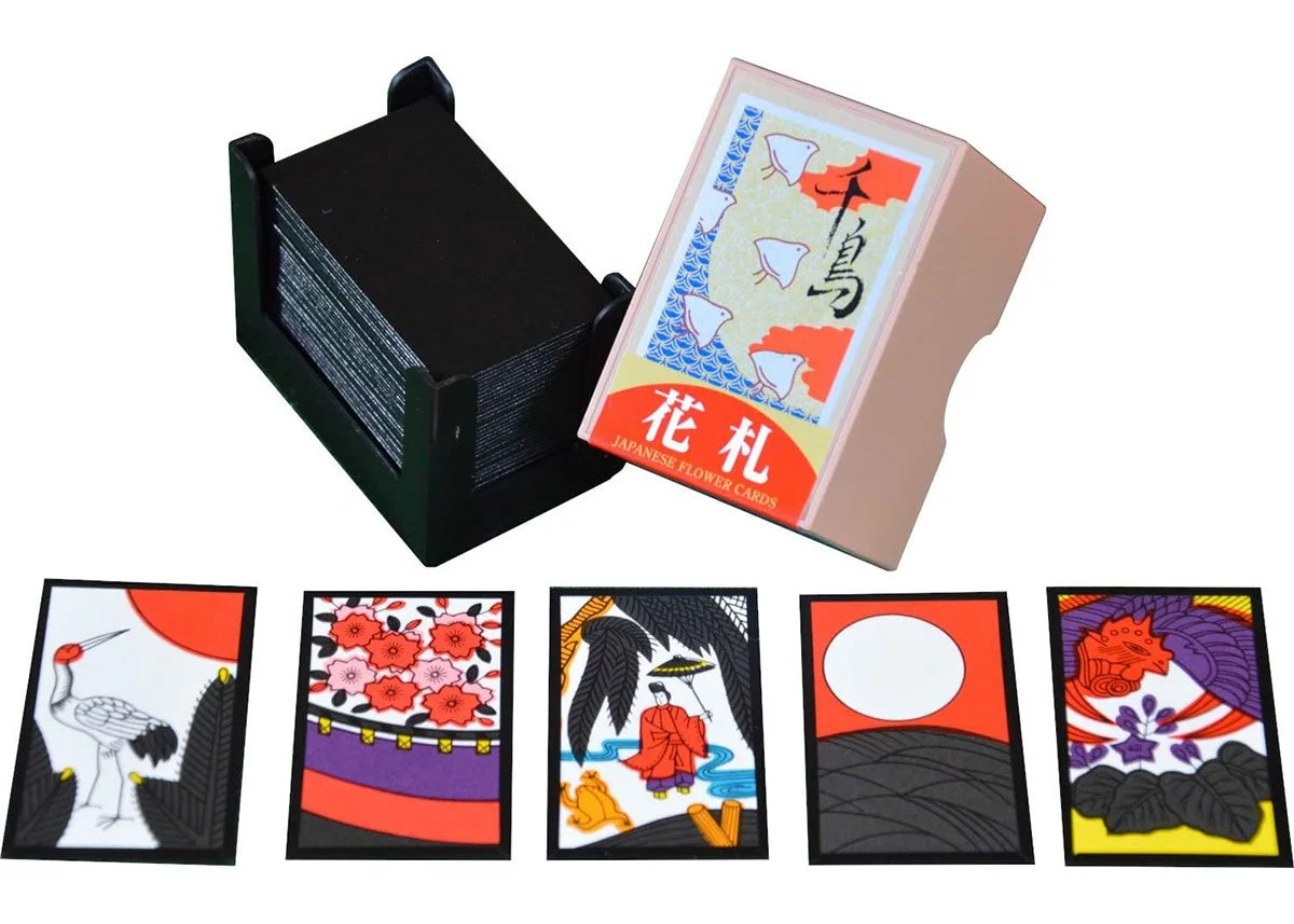 Dive into the nostalgic world of hanafuda with this authentic Japanese deck! The vibrant floral designs on sturdy, black-bordered cards bring back childhood memories. The colorful paper on heavy board cards captures the essence of authentic play. Relive the joy of hanafuda with cards that look and feel like those from the past. Experience lots of fun in the authentic world of hanafuda, directly from Japan!