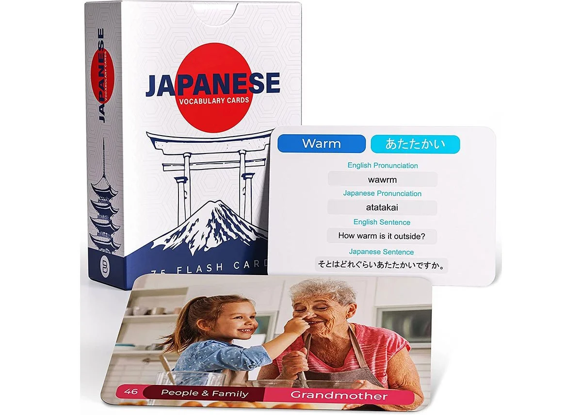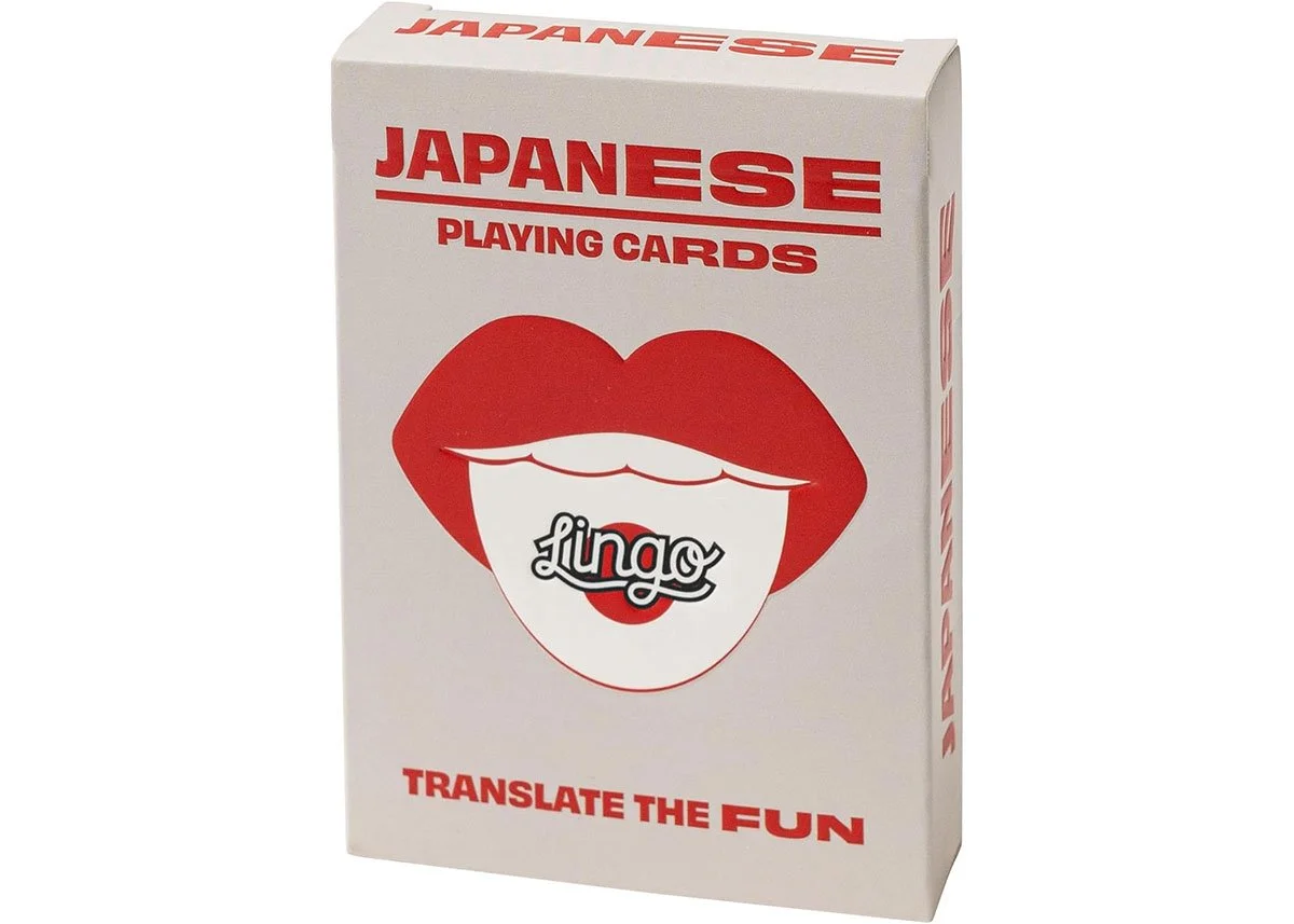 Ideal for travelers and language learners, these Japanese lingo playing cards feature 52 essential phrases and translations, perfect for your Japan trip or language studies. Learn Japanese words while playing classic card games like Poker, Blackjack, Spoons, Rummy, Go Fish, Memory, Crazy Eights, Hearts, and Solitaire. Be the talk of the game night by ordering your Lingo Playing Cards today.