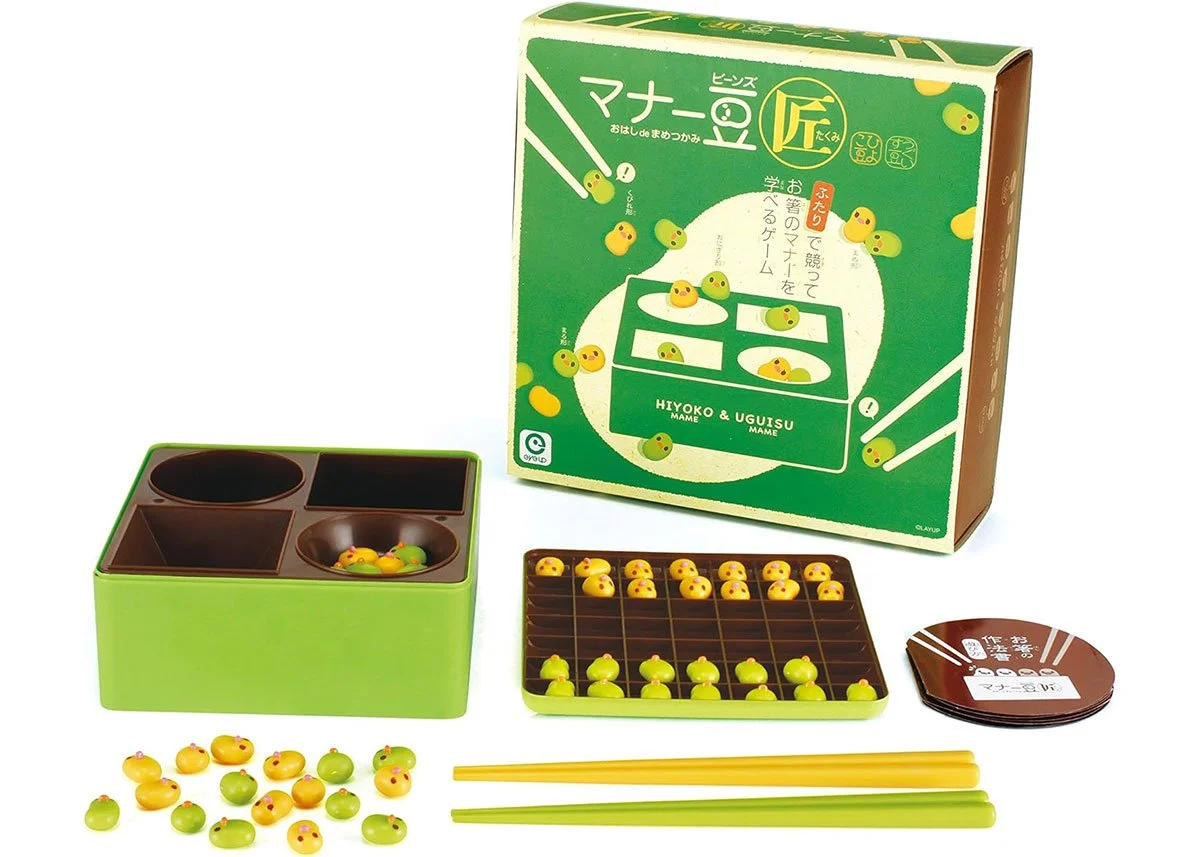 Experience the Chopsticks Manner Learning Game's second edition, a friendly competition for two players aiming to become chopstick masters. Pick up beans shaped like traditional ones for ease but face an extra challenge with rounded-triangle and M&M-shaped beans. For added fun, set aside the trickier beans until you're ready, creating an enjoyable and entertaining chopstick proficiency test!