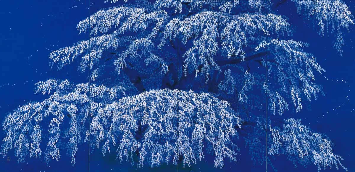 Born in 1945, the third son of famous nihonga painter Kiyoshi Nakajima, Chinami Nakajima managed to step out of his father’s shadow to become one of nihonga’s most celebrated talents thanks in part to this piece. It’s a textual depiction of a weeping cherry tree, its branches sagging under the weight of its blooming buds against the backdrop of an evening sky. Nakajima created this almost 3D imagery by layering the paint to give it a uniquely physical dimension.